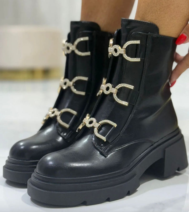 Anfibi in pelle con dettagli gioiello per chi ama distinguersi con classe.