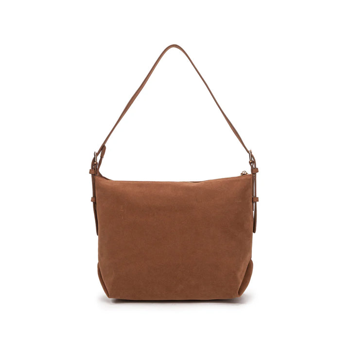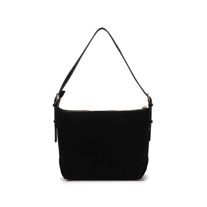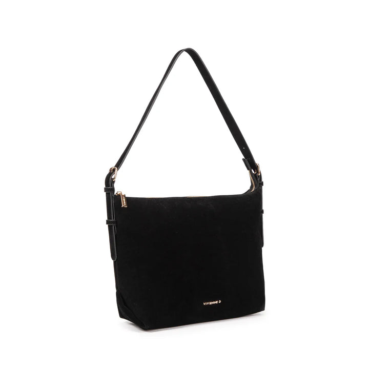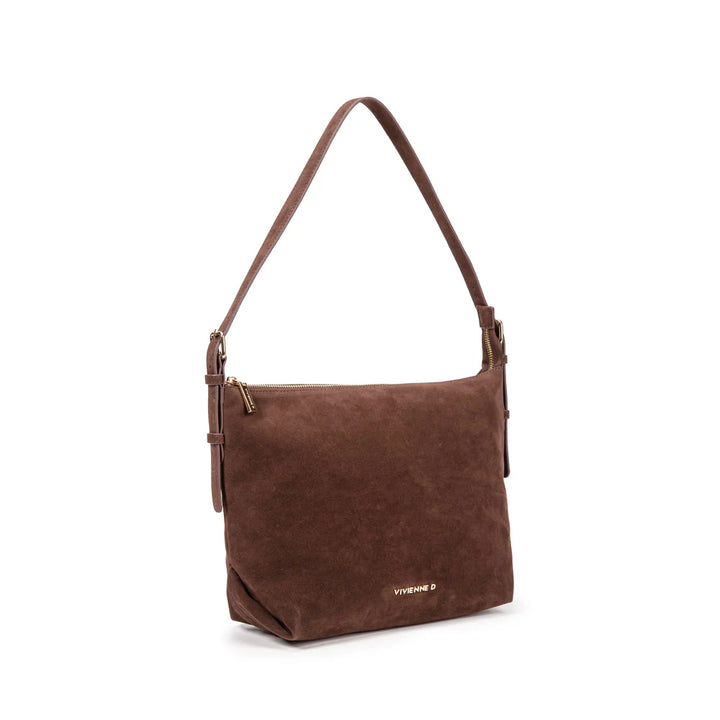 Borsa scamosciata con logo VIVIENNE D finitura dorata